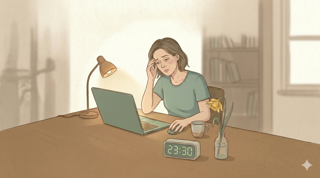 Aussi, quand on est fatigué on perd sa capacité de résistance. On choisit la solution la plus simple pour calmer son angoisse : rallumer son ordinateur pour finir le travail. Le repos peut demander plus d’effort mental (pour gérer la culpabilité) que de finir le dossier.